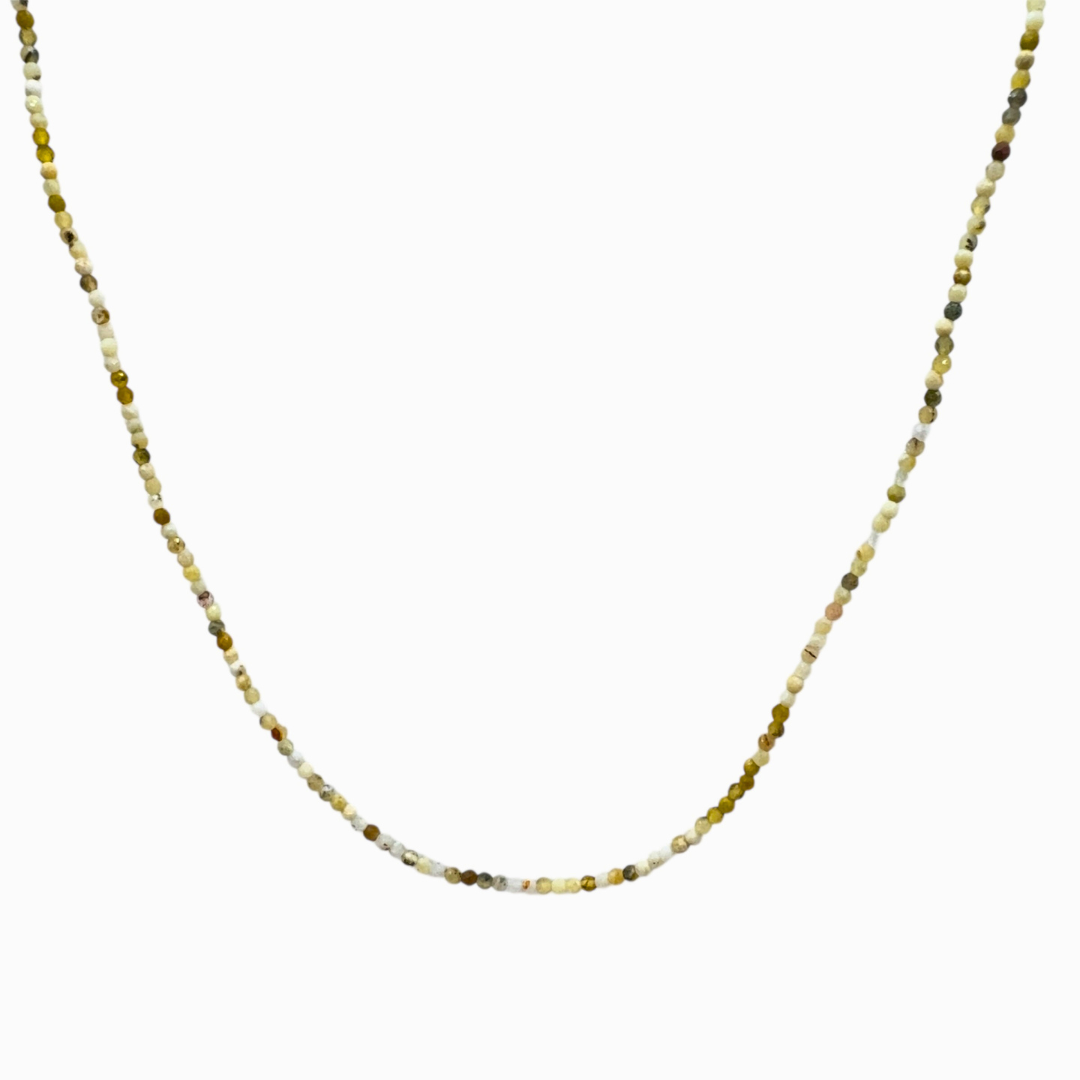 Delicado e poderoso, este colar é composto por pedras naturais de calcita amarela de 2 mm. Os fechos em prata 925 com banho de ouro 18k garantem um acabamento sofisticado e durável. Uma peça clássica com brilho intenso, perfeita para quem busca elegância e autenticidade em cada detalhe. Ideal para presentear ou marcar momentos especiais.