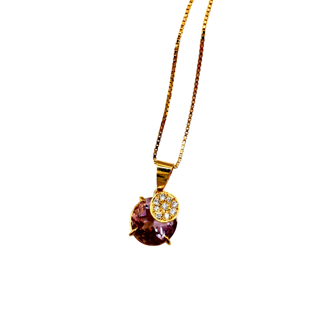 O Colar da Coleção Elisabeth é uma peça que traduz elegância e significado. Com corrente Cartier Mini, confeccionada em Prata 950 e Ouro Branco, o pingente traz um design exclusivo que combina a delicadeza de 9 diamantes Brown de 0.5 pt cada com a pureza de uma Ametista.