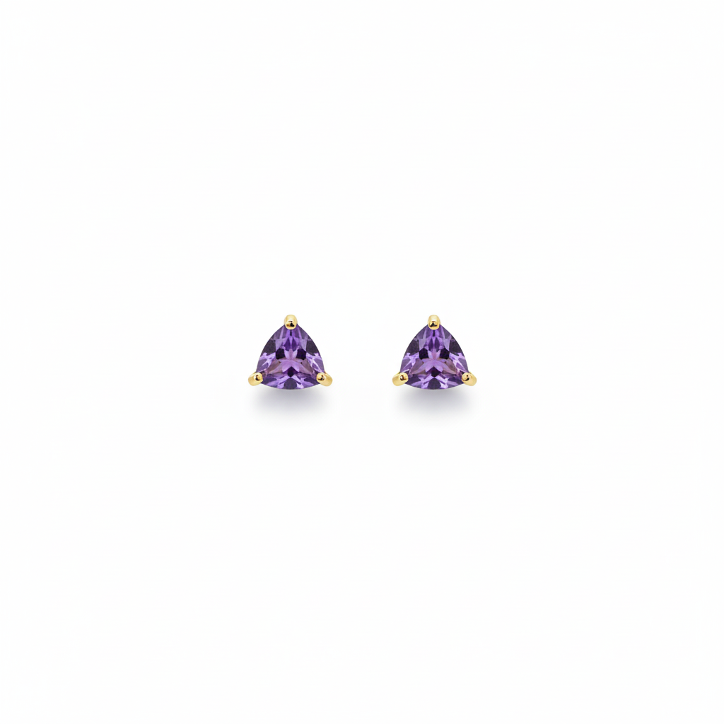 Apresentamos o Brinco Stud em formato de triângulo, uma peça moderna e elegante que combina o encanto da ametista com o design contemporâneo. Este par de brincos apresenta duas ametistas lapidadas em trillon, com 6 mm de tamanho.